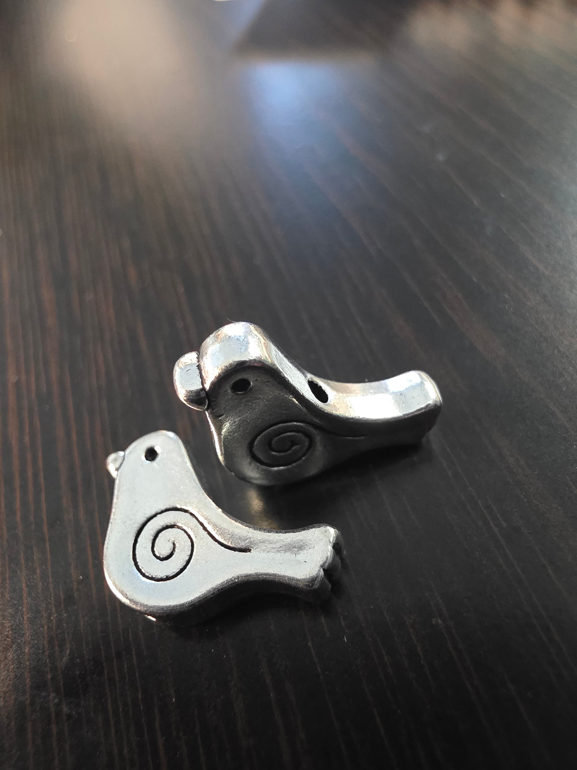 Sweet bird sits on to of this pair of beautiful pieces of thick tagua slices. Very special! Gorgeous grain and heather blue, with light gray misty shade.