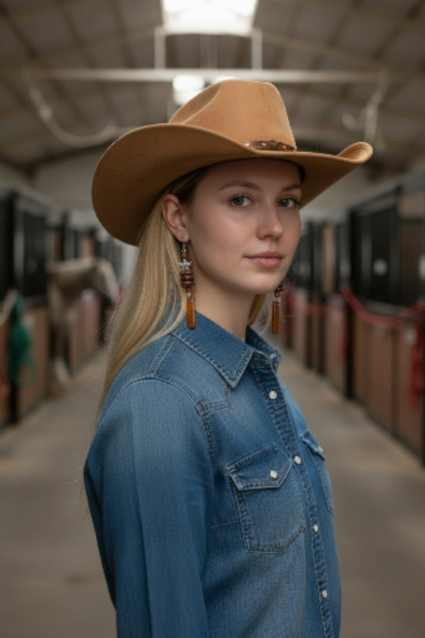 Bay Horse Brown Baguette Tagua Earrings with Country Star Bead
