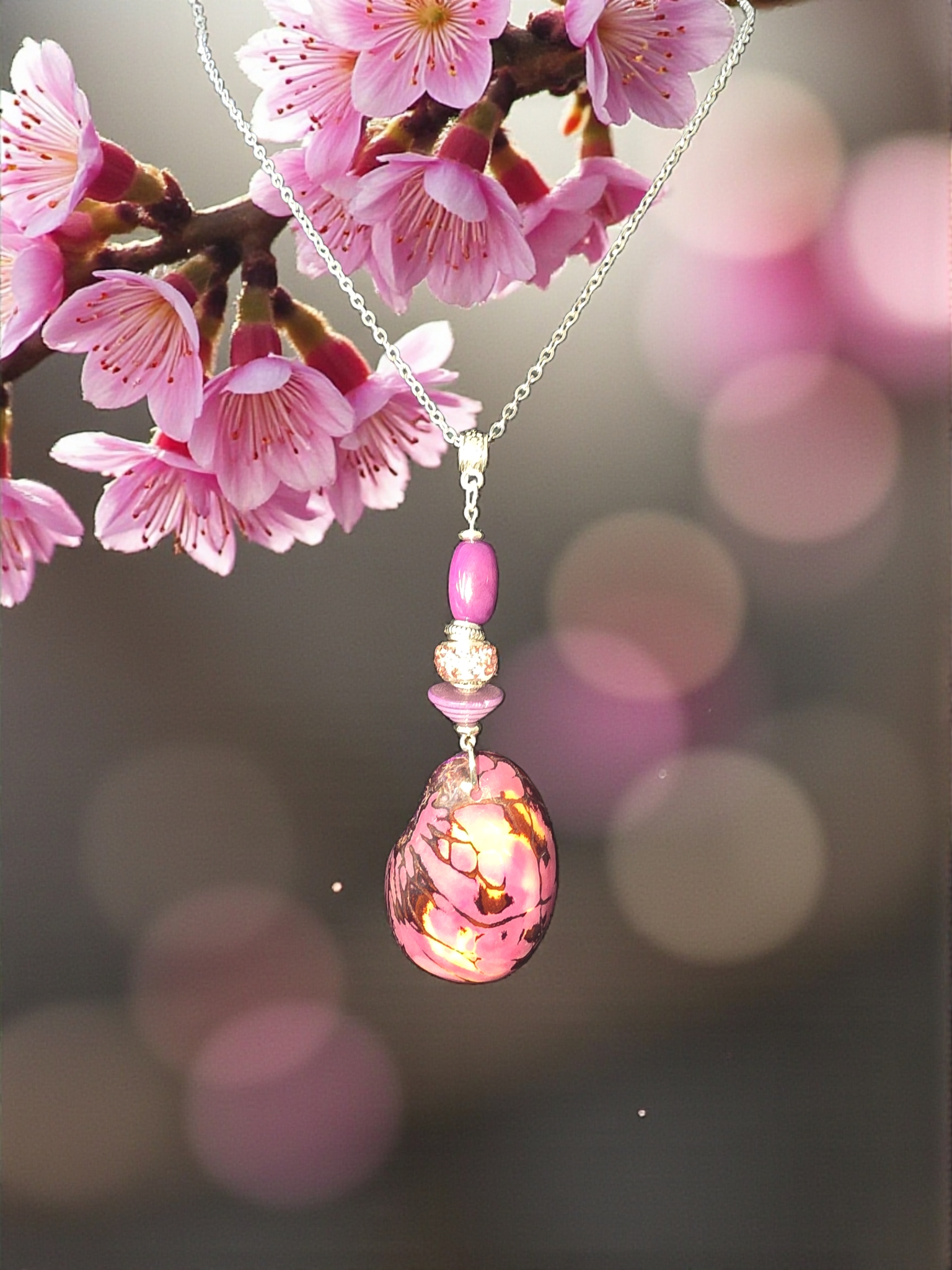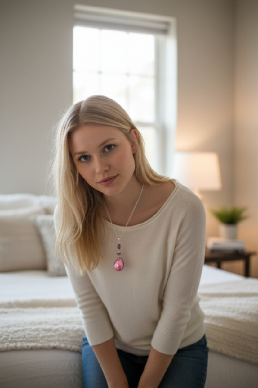 Luscious Lavender Natural Marble Tagua Slice Pendant Necklace
