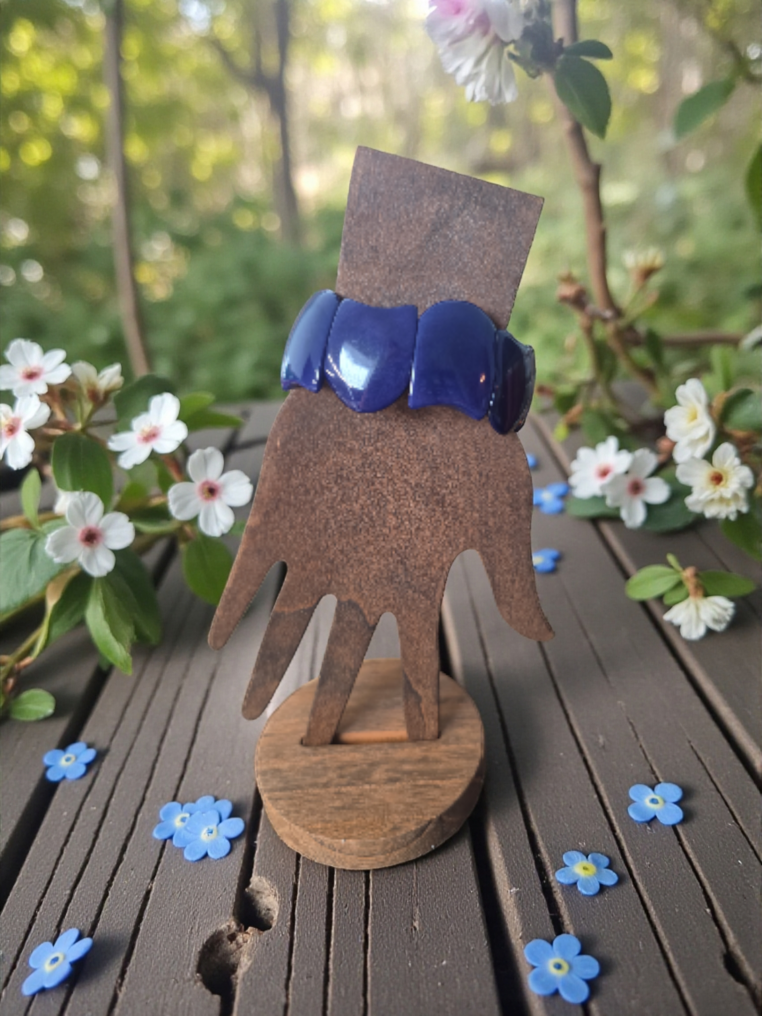 Rich Navy Blue Carved Vegan Tagua Nut Vegetable Ivory Bracelet