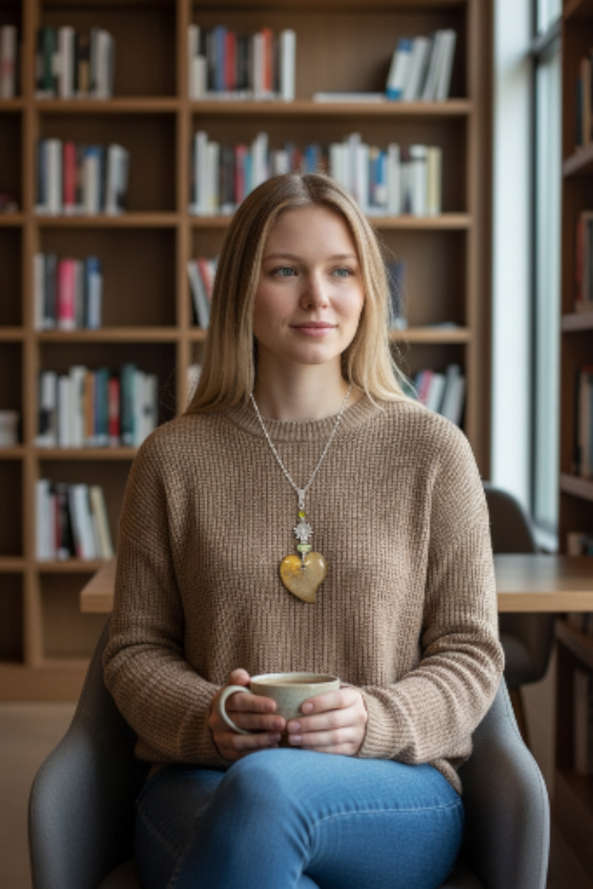 Olive Carved Heart Meets the Sun Amulet Pendant Necklace Vegan from the Rainforest