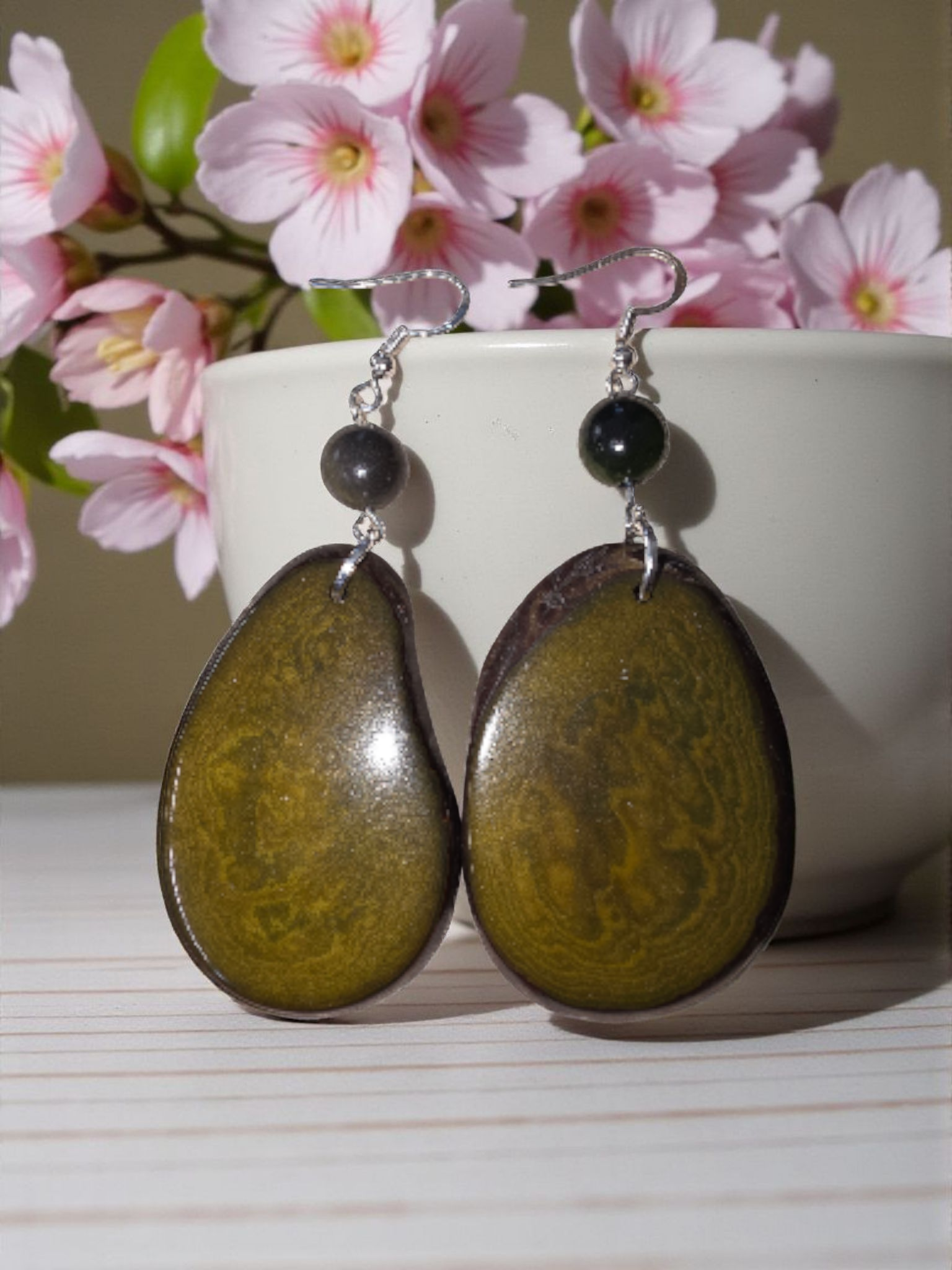Stunning Olive Green Natural Unique Grain Earrings Center Slice Tagua